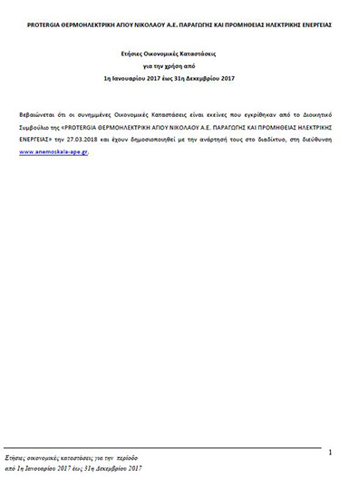 Για να κατεβάσετε τις Χρηματοοικονομικές Καταστάσεις του 2017 πατήστε εδώ