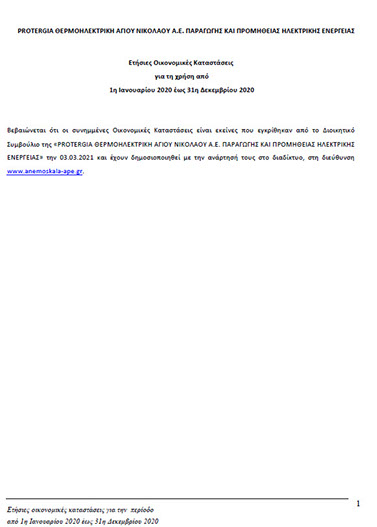 Για να κατεβάσετε τις Χρηματοοικονομικές Καταστάσεις του 2020 πατήστε εδώ